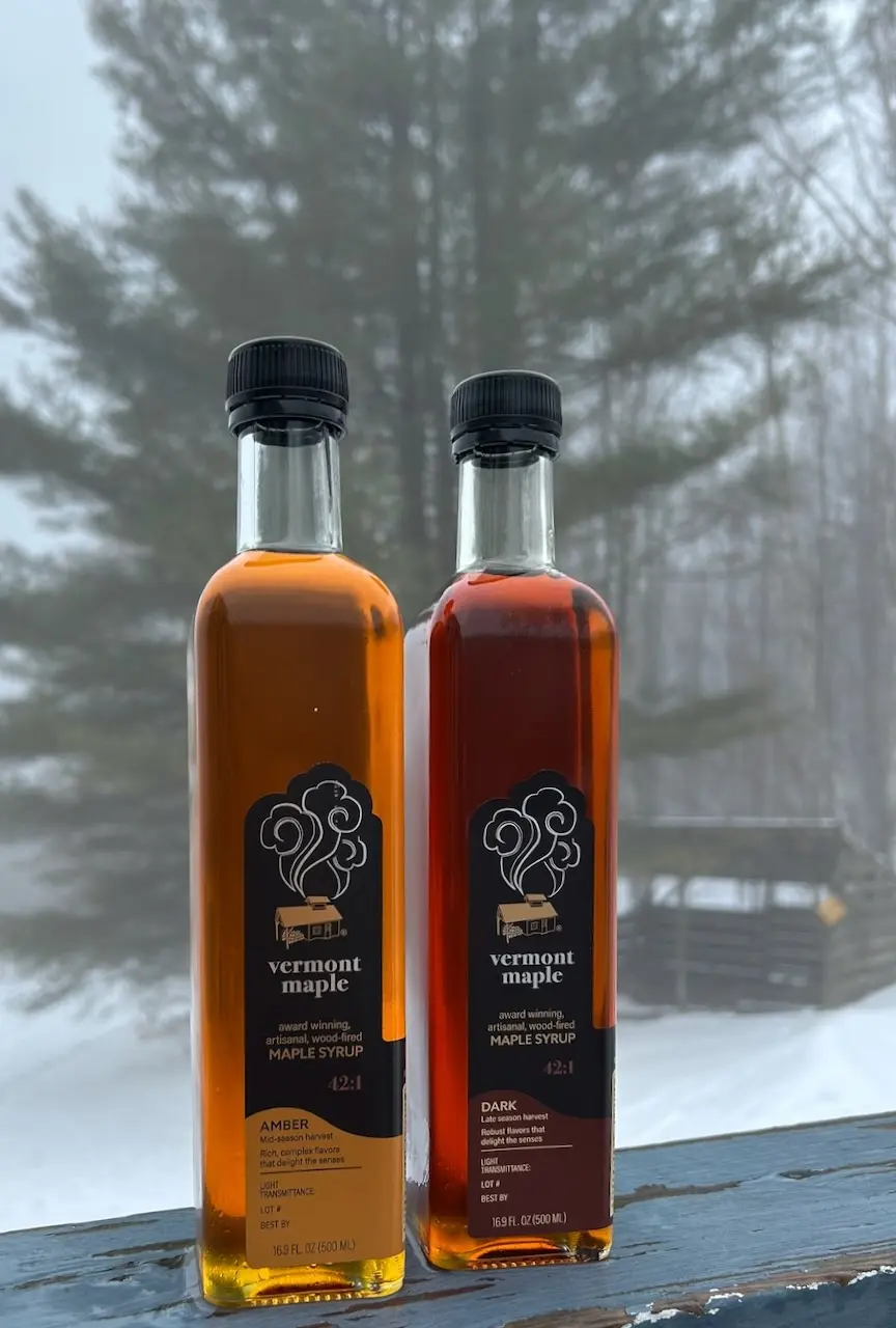Our family has been making maple syrup since 1840. We built our current sugarhouse in 2010 beside an old-growth sugarbush, where towering maples — most 100 to 200 years old — provide sap we transform into syrup that makes people inarticulately happy.